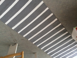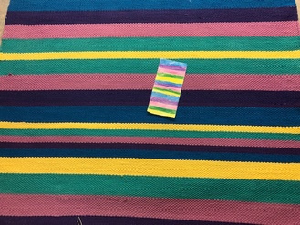 Leikkimöin matto. Lapsi suunnitteli ja mummo kutoi.